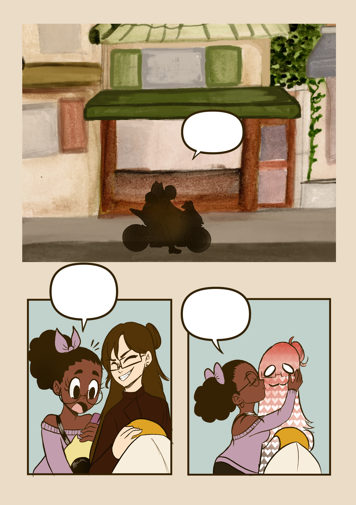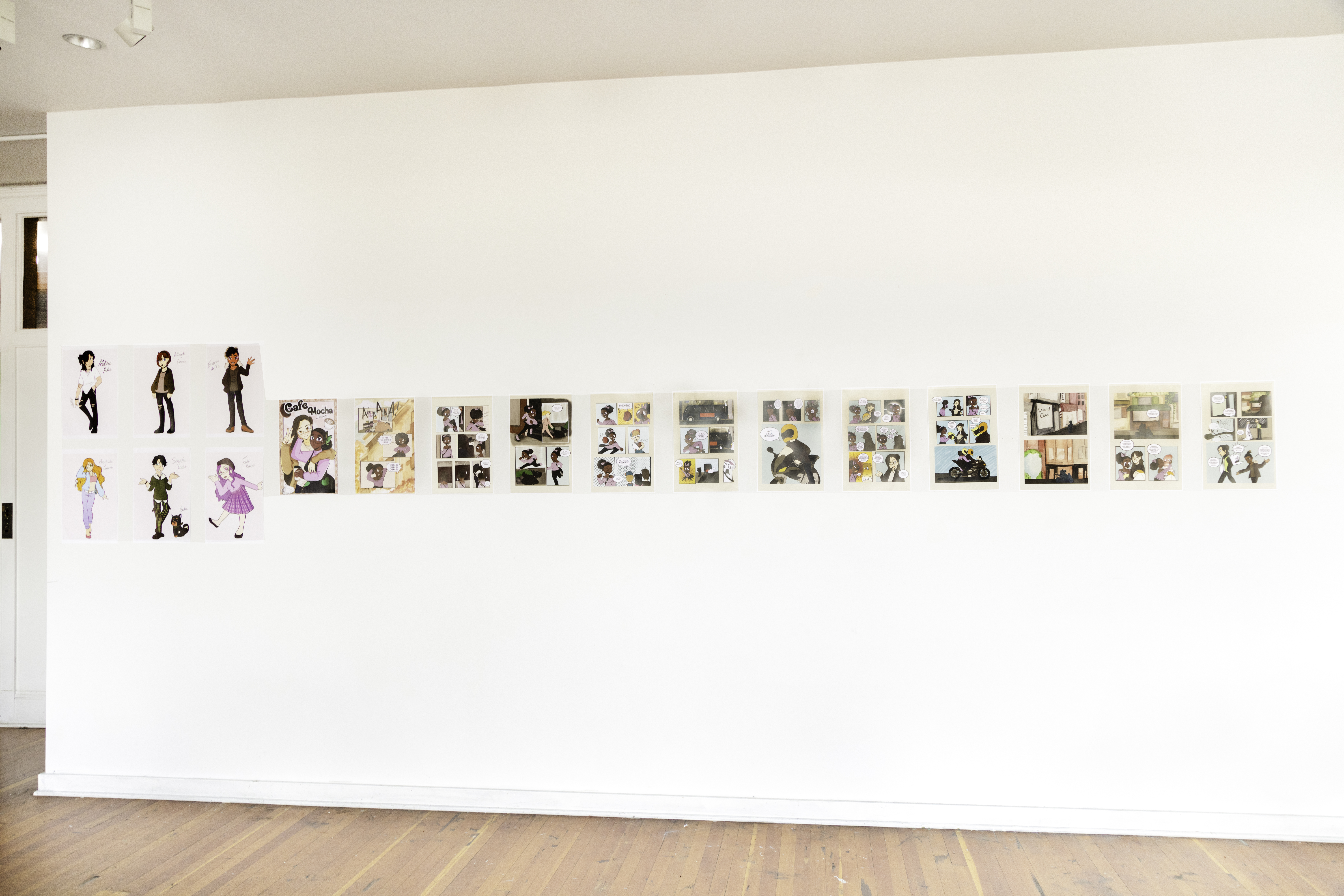 Cafe Mocha, is a young adult graphic novel series about navigating the chaos of adulthood, while also exploring themes of relationships, mental health, and family. After moving to a new town for college, Moka, our kind yet nervous bundle of joy, struggles to adjust to her new surroundings and make new friends. That is until she meets and falls in love with Kohi, the town’s most eccentric inhabitant. Cafe Mocha, will be a graphic novel series consisting of a total of four books. Presented at thesis was the first chapter of the series, which follows the story of Moka trying to get to work on time and Kohi coming to her rescue. This chapter consisted of 12 fully colored pages that mixed digital media and traditional media, mainly watercolor for the backgrounds. I took the watercolor backgrounds and scanned them into Clip Studio, to correct any imperfections, and tweaked them to fit the style of the comic. I have printed a prototype of the comic to be presented as a proof of concept to be pitched to a publisher or to be used for a kickstarter.