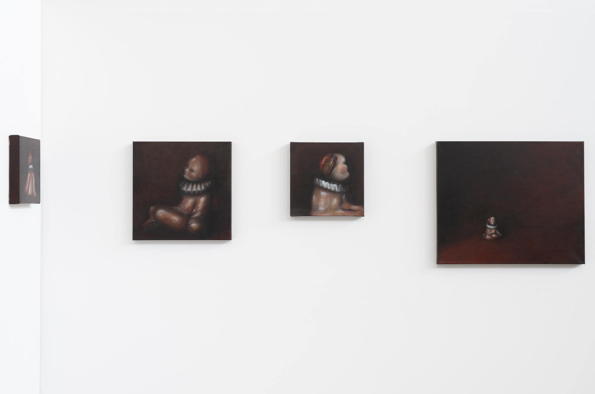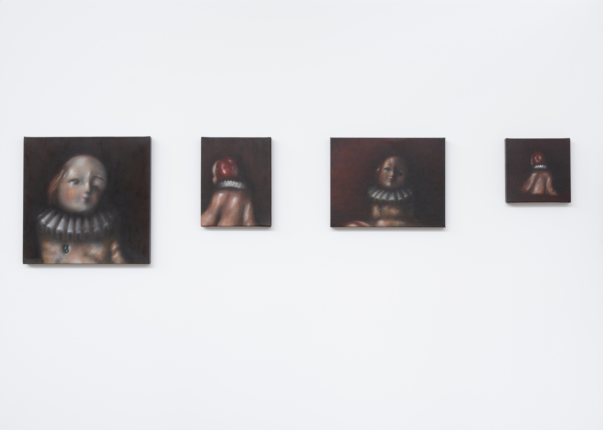 The Clown is a formal investigation of iteration, technique, and endurance in my artistic process underpinned by an exploration of interpretation and meaning in painting. I have created seven smaller-scale paintings all representing the same subject that read together as one body of work. I made a conscious choice to refrain from prescribing a narrative to the work, allowing my viewer to reach their own conclusion, rather than preemptively assign it for them and follow with a supplemental written explanation. With The Clown series, I attempted to invoke an atmosphere of irresolution through representational oil painting, in this case, using a small porcelain clown figurine as my only reference. My motivation to disrupt some logical function or compulsive intellectualization in the process of viewing paintings is a reflection of my studio practice as well as my reverence for the enigmatic. This paper will explore how I’ve chosen to approach my time in this program, as well as for my thesis project—with a self-designed curriculum centered on a technically focused material study in oil painting.