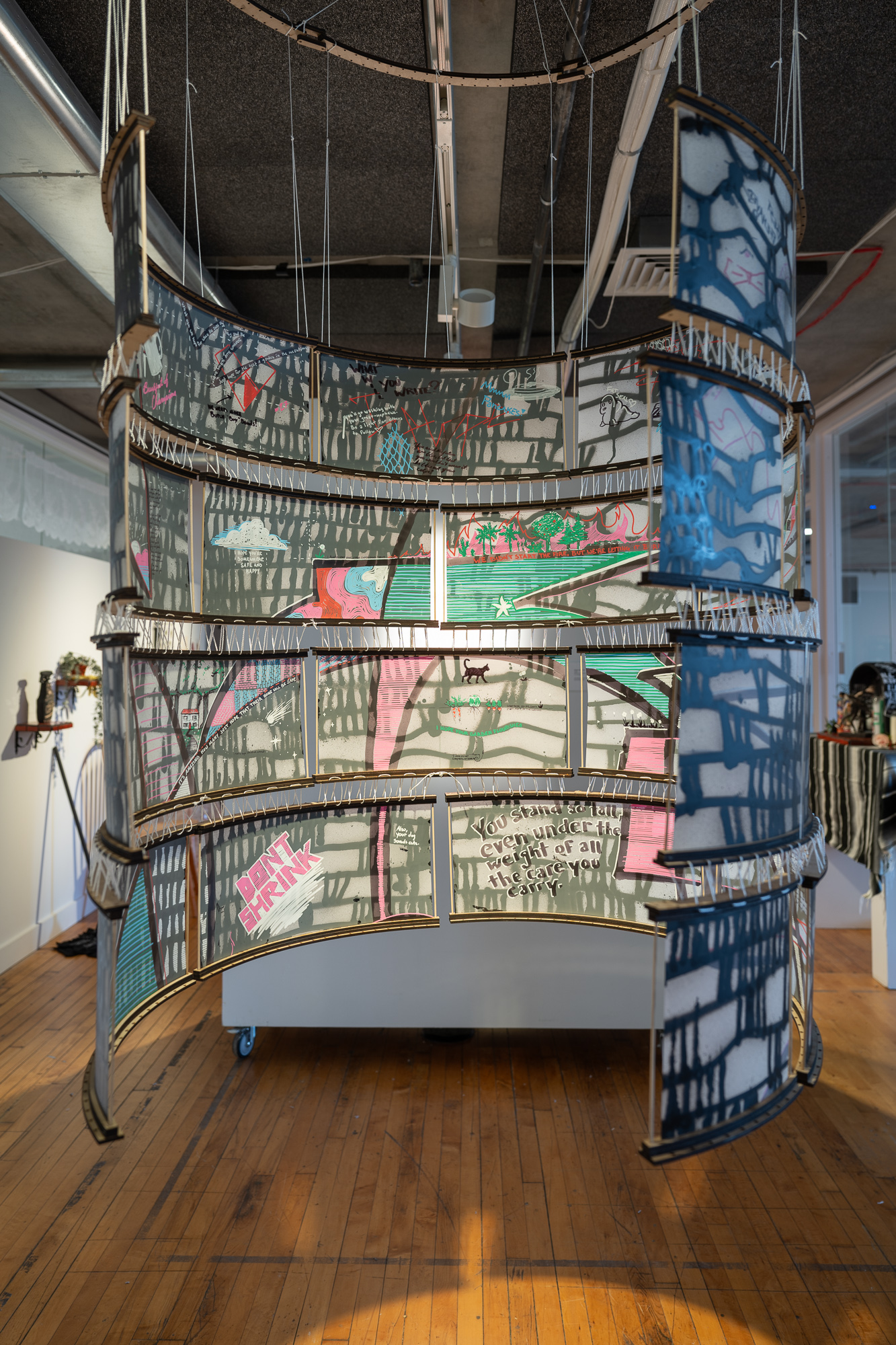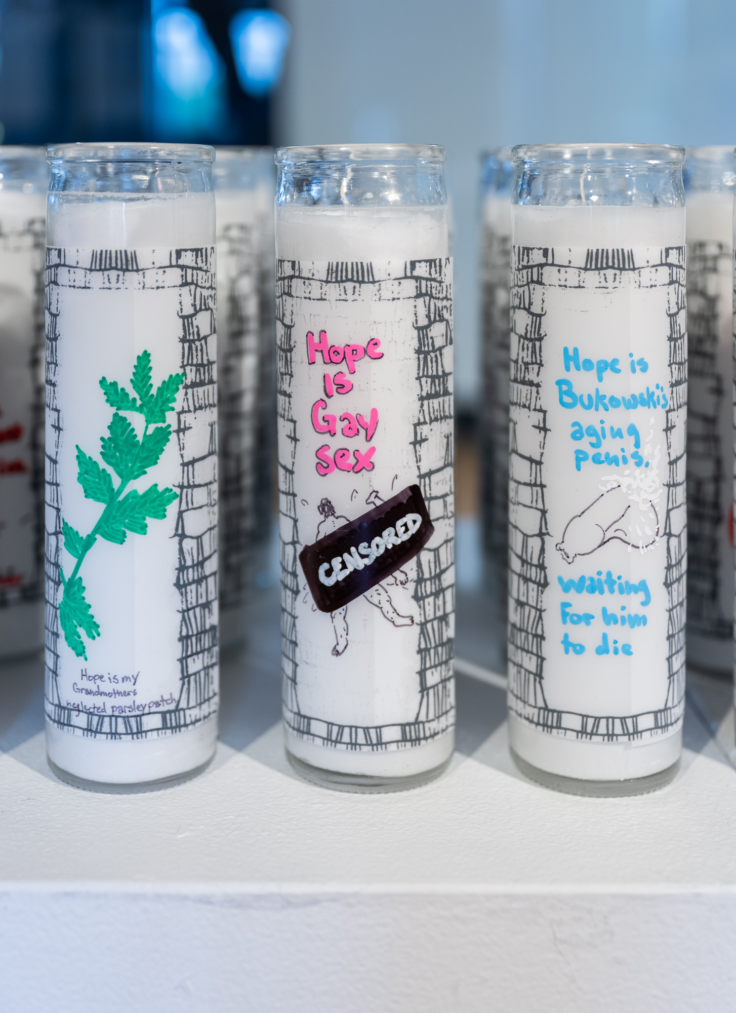 "Love Letters" is an exploration of queer hope and queer futurity. Using the writings of Edouard Glissant and Jose Esteban Munoz as its conceptual backing, the visual work combines drawing, plastic, wood, candles, and nylon cord to describe a private artist's hopes for the future. Lace becomes a metaphor for the ways that the patter of queer history is traced, interpreted, and passed along to future generations. Each piece is an epistolic portrait of someone who the artist hopes will be a part of their queer future.