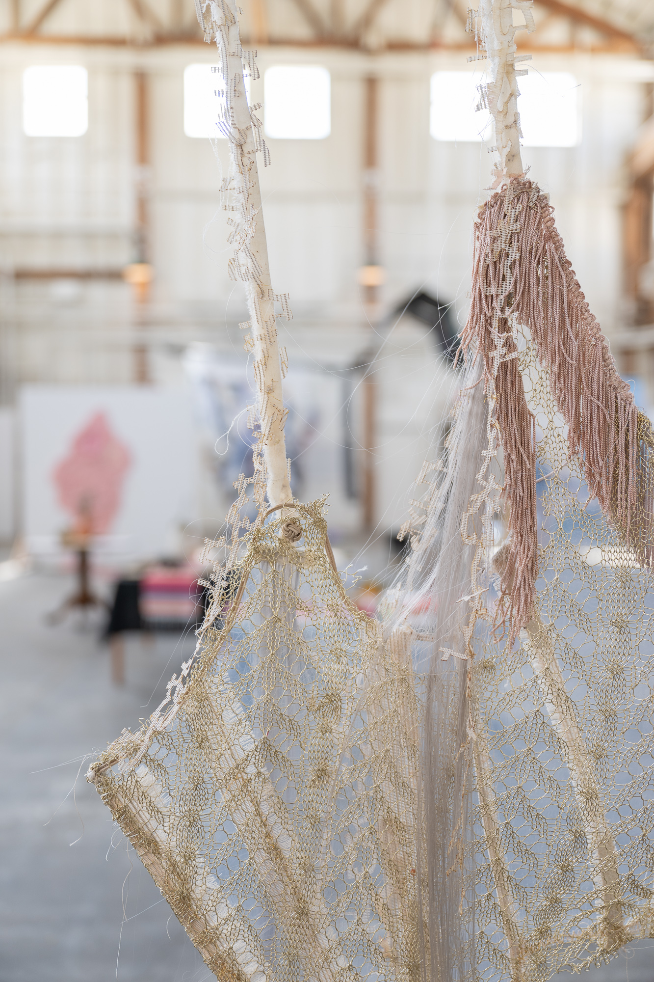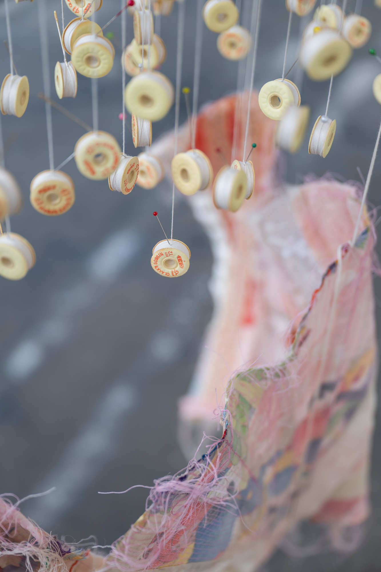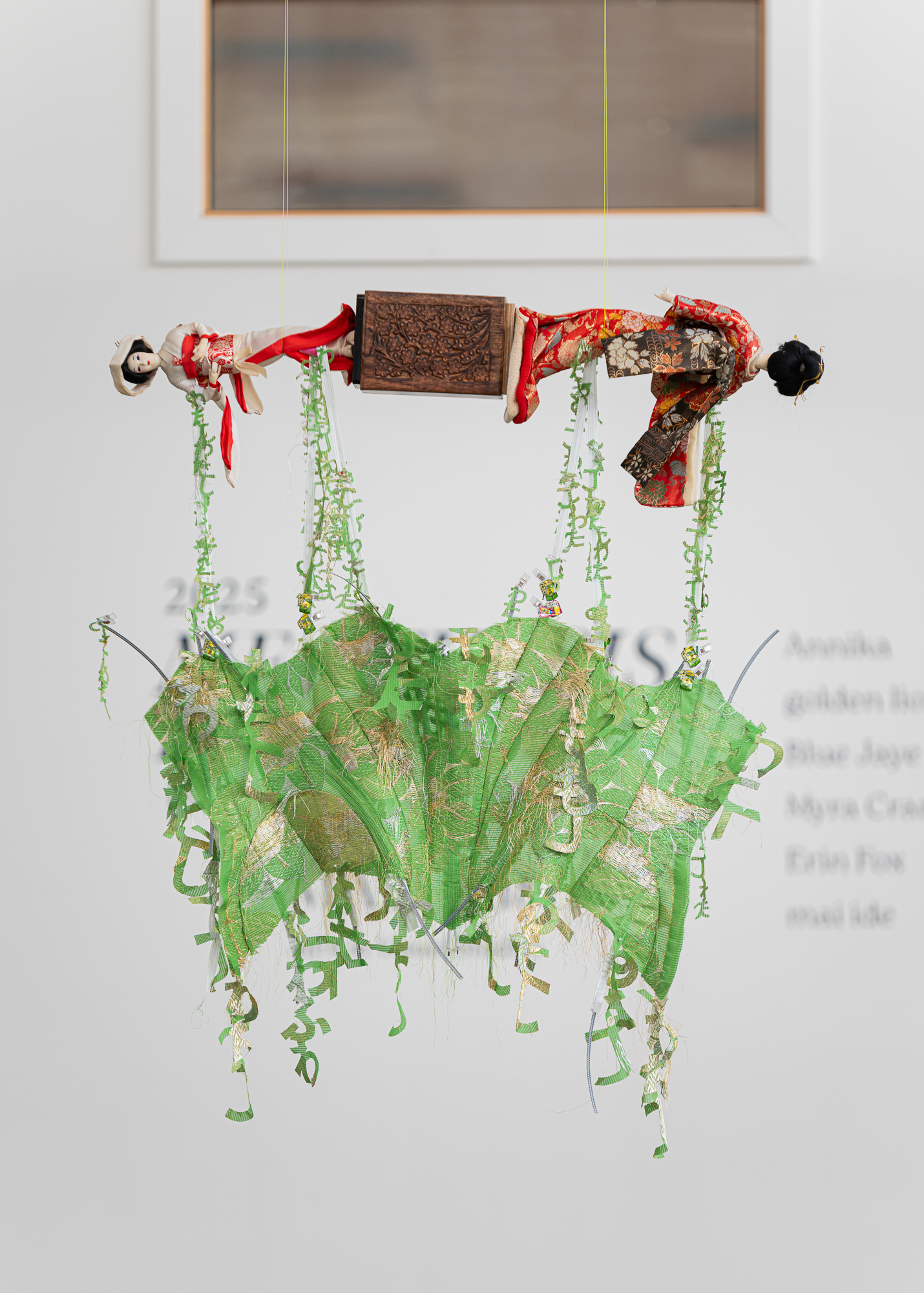 Mai also analyzes the pervasive influence of the white gaze on Asian American women, investigating how historical and contemporary racialized and gendered experiences impact visibility, desirability, and agency. She confronts the ways systemic perceptions dictate representation and how these constructs influence societal roles. Additionally, her project delves into the complexities of her relationship with her mother, using art to process and give form to her identity. Textile objects and sewing become key mediums for honoring familial connections, allowing her to preserve meaning and family history through tactile expression.