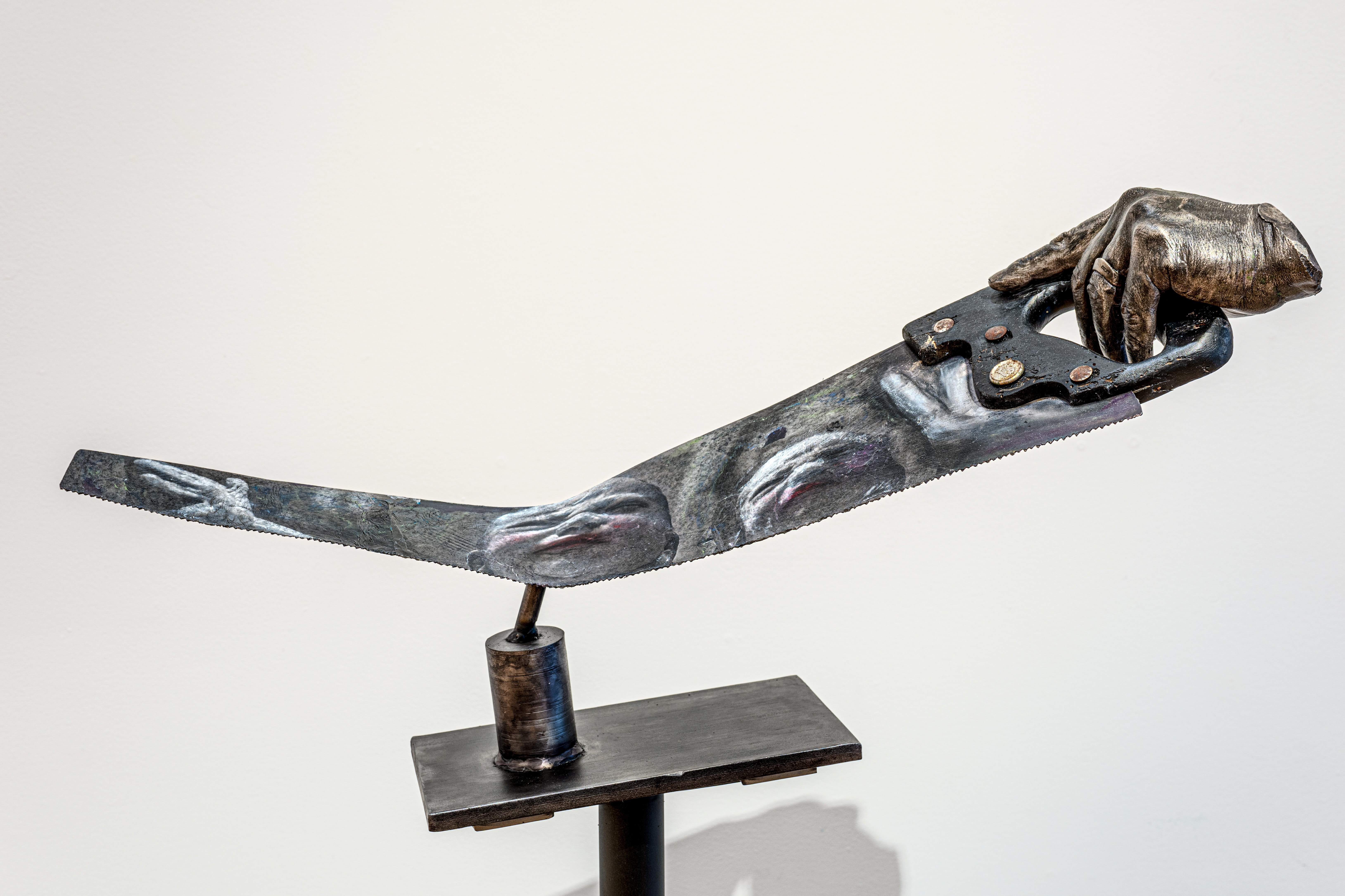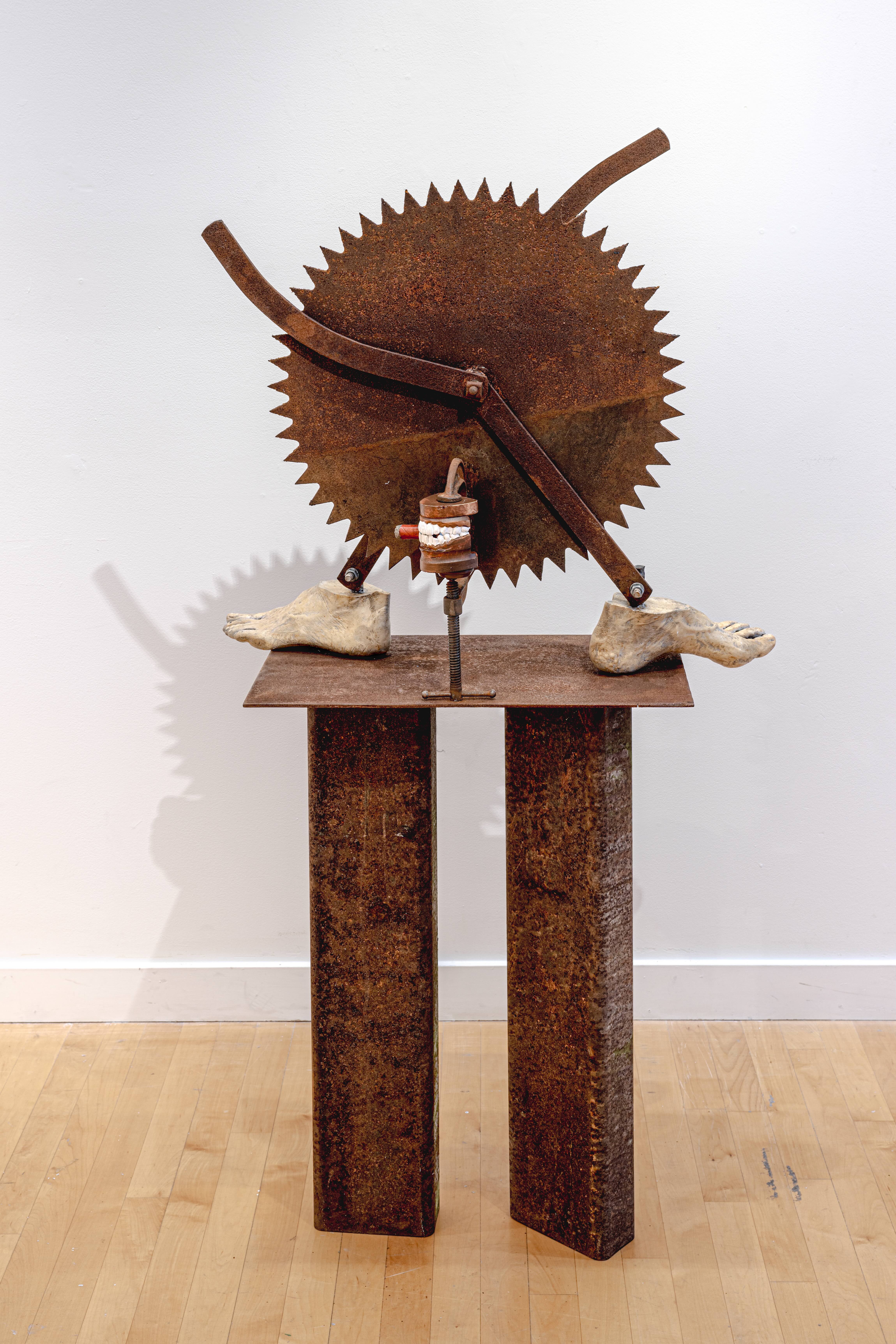 Olly Olly Oxen Free is a multidisciplinary MFA thesis that explores the role of the artist as a “wounded healer,” interweaving personal history, psychoanalytic insight, and creative practice. Bridging my careers as both a visual artist and physician-psychoanalyst, the work investigates how emotional wounds—personal, cultural, and collective—can become sites of transformation and resistance through art. Inspired by Carl Jung’s notion of the shadow and the archetype of Chiron, this thesis frames creative practice as a form of psychological integration. Drawing upon myth, memory, and contemporary visual culture, the exhibition and writing trace a path of healing that emerges not from resolution, but from inhabiting the uncertainty and pain of lived experience. Through sculpture, photography, and narrative, the project reflects on dualities such as visibility/invisibility, control/autonomy, and trauma/resilience. Emerging from the pandemic and a climate of escalating cultural marginalization, works such as Olly Olly Oxen Free, It’s a Texas Thing, and Jazz Hands explore themes of exclusion and belonging in a Texas landscape shaped by regressive policy. Community collaborations, including Photography projects with OUT YOUTH in Austin, TX, centered on affirming the presence and identity of LGBTQ+ teens, exemplify the healing potential of portraiture and visibility. The experience of my trans granddaughter’s forced departure from university, underscore the real-life impact of political hostility and the need for compassionate presence. This work is not only autobiographical but operates as a cultural mirror, using materials like steel, plaster, and reclaimed objects to forge ritualistic totems of grief and resistance. In reclaiming artistic identity within the frame of therapeutic practice, the thesis asserts that creativity and vulnerability are tools for both personal metamorphosis and social critique. Ultimately, Olly Olly Oxen Free is a call to step out of hiding, into the light—an invitation for artist and viewer alike to witness, to feel, and to heal.