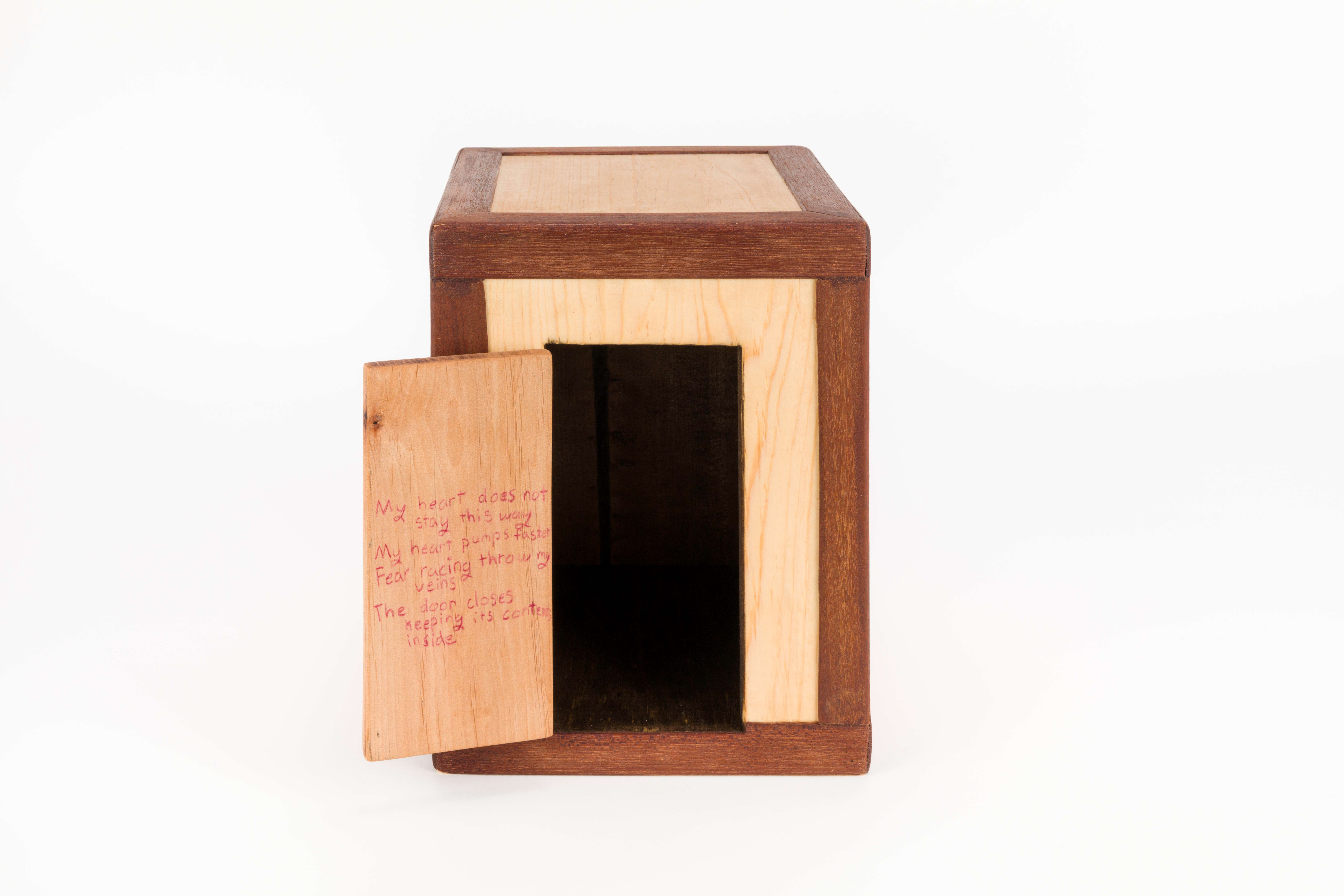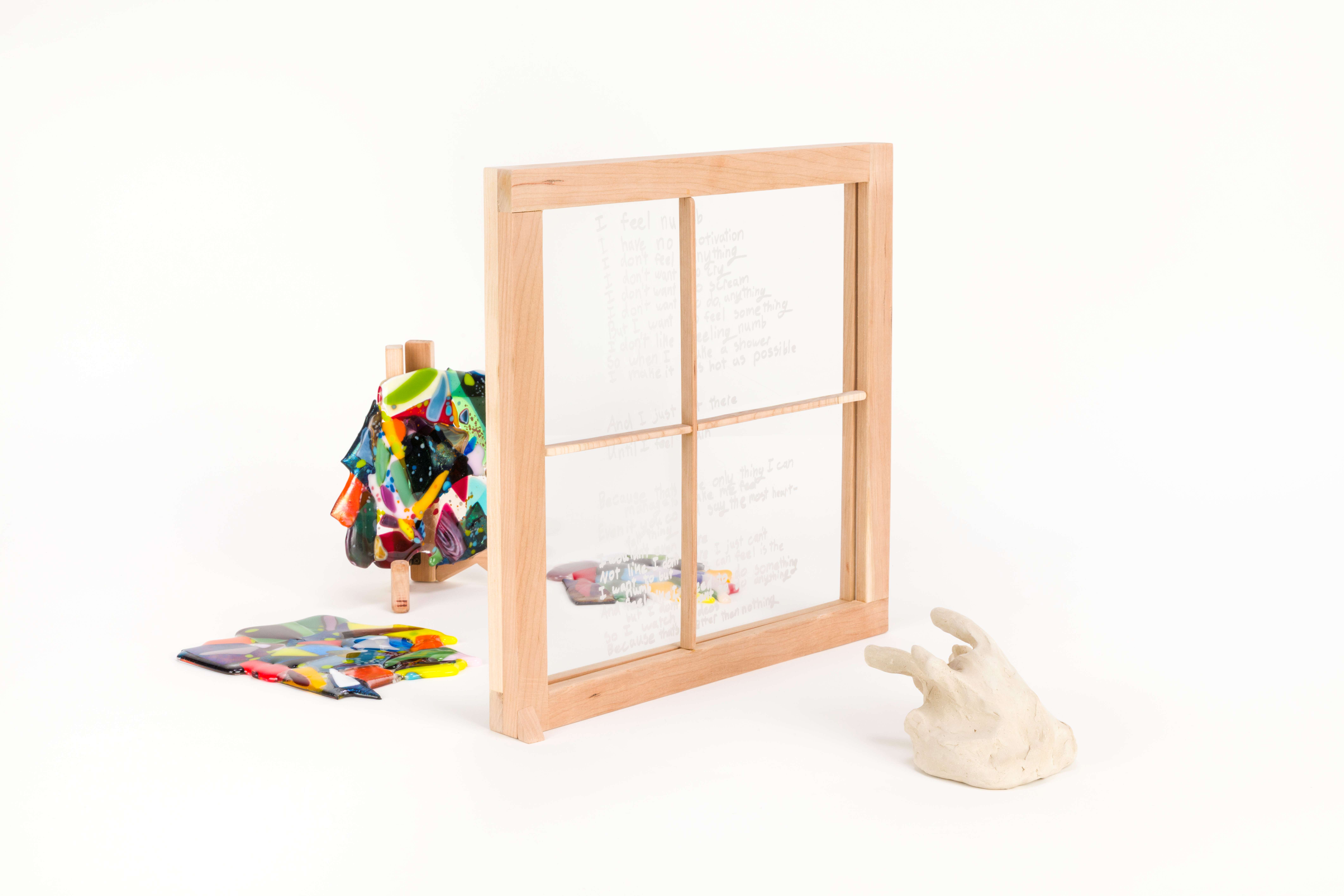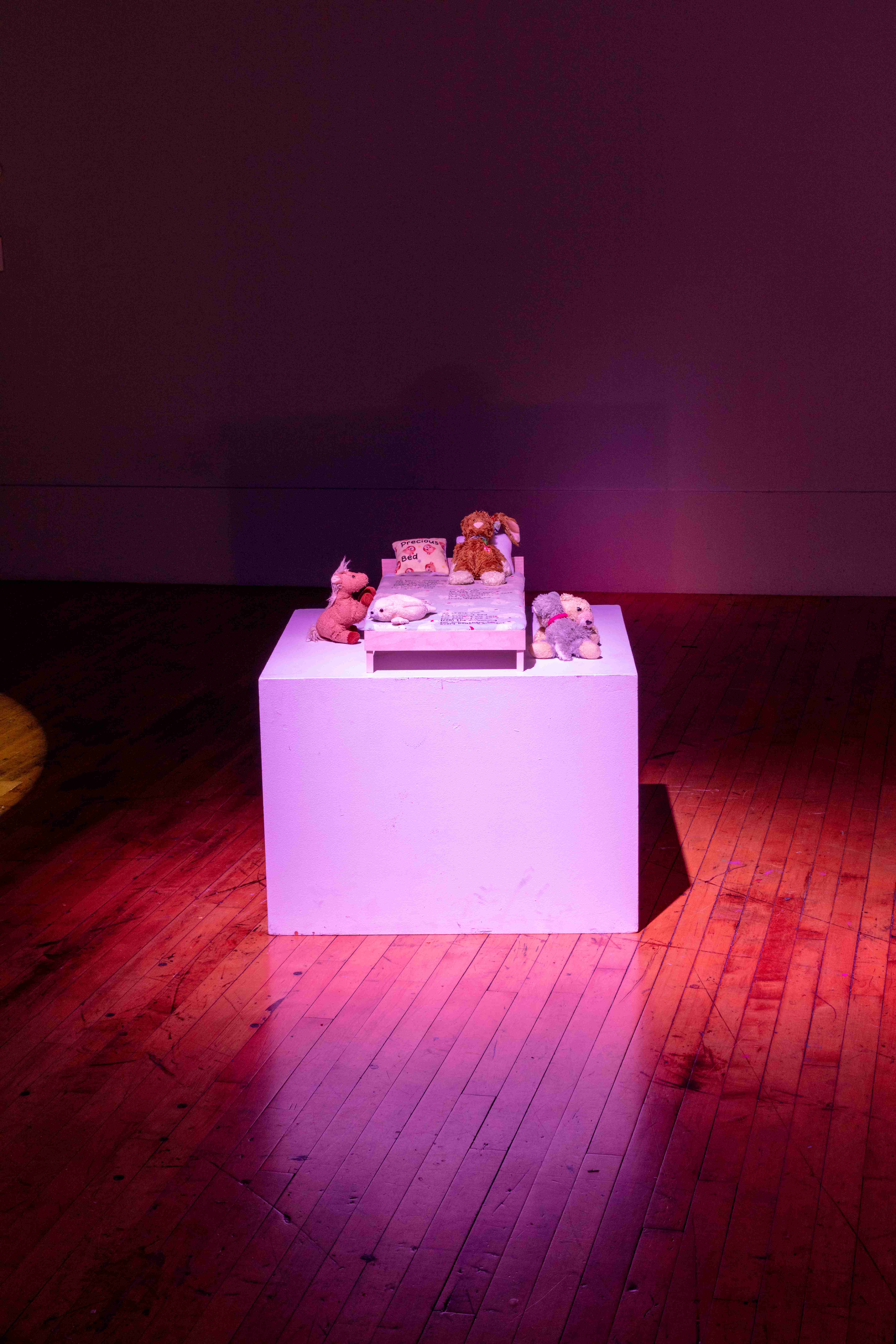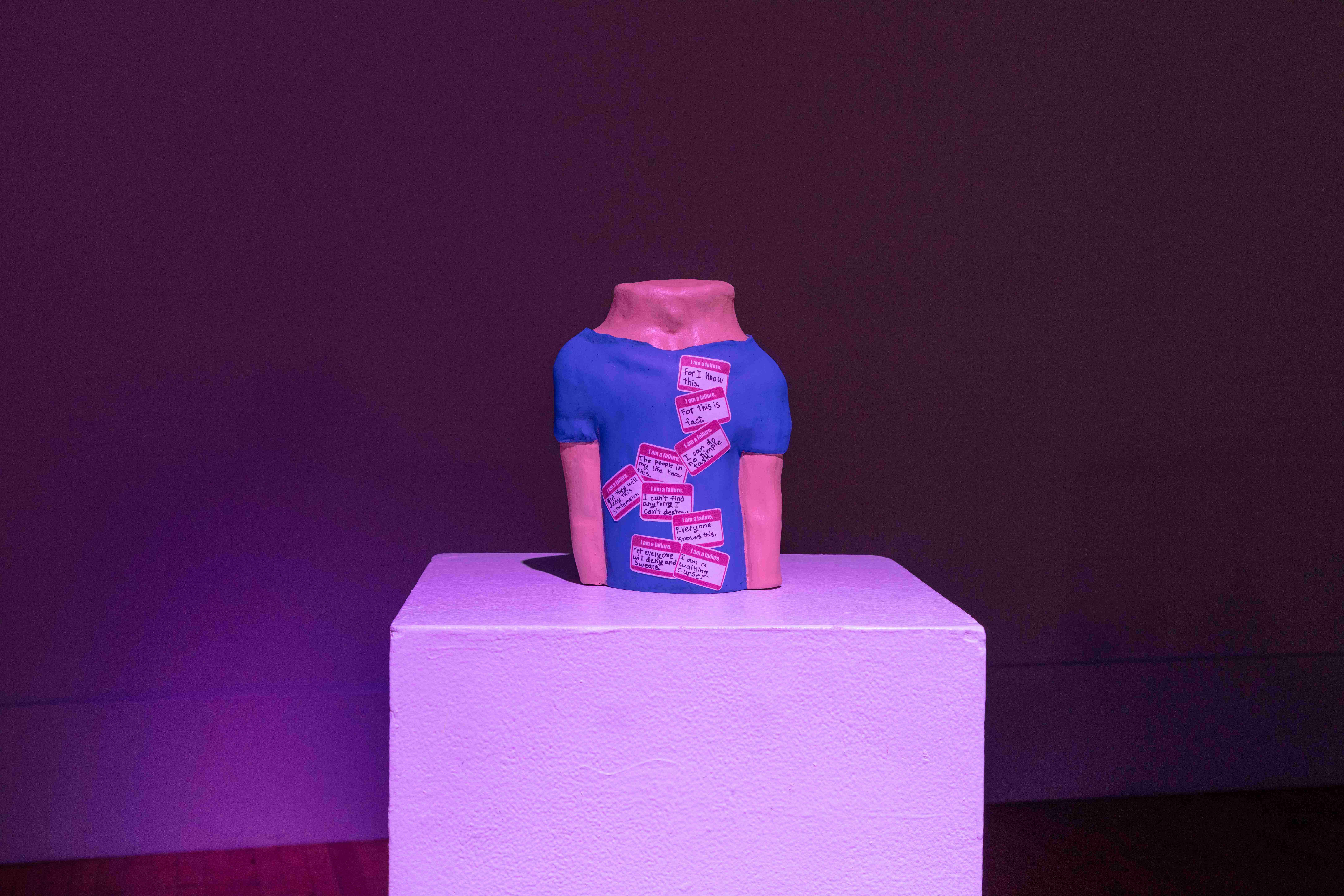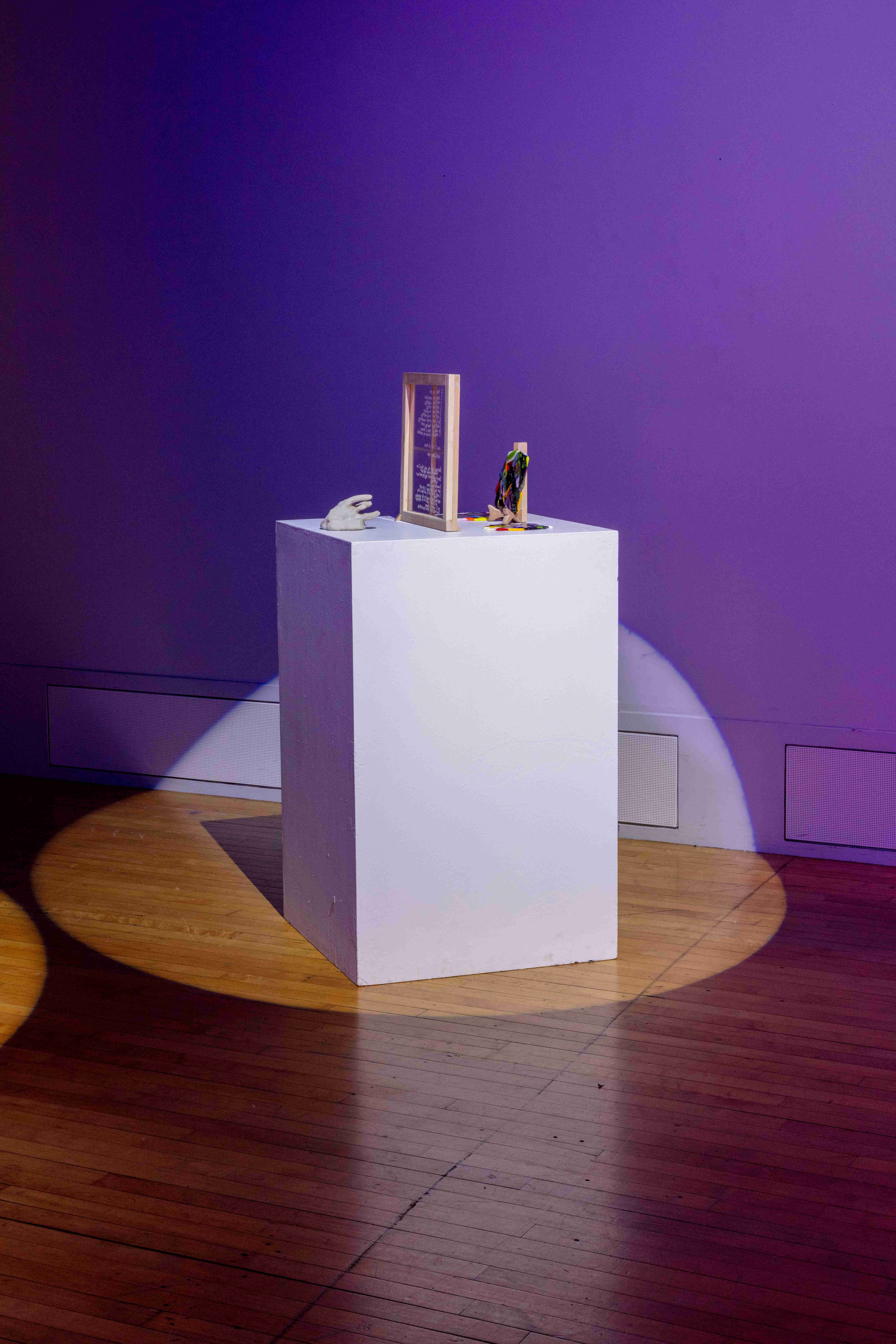 The content of this work looks into my past, where childhood abuse took place from around the ages of 8–15. The intent behind this work is to take the poems that I wrote during this time and poems that I have written to my younger self and bring them into physical space. In doing this, it allows me to process what I went through so I can begin to heal from my childhood trauma.
