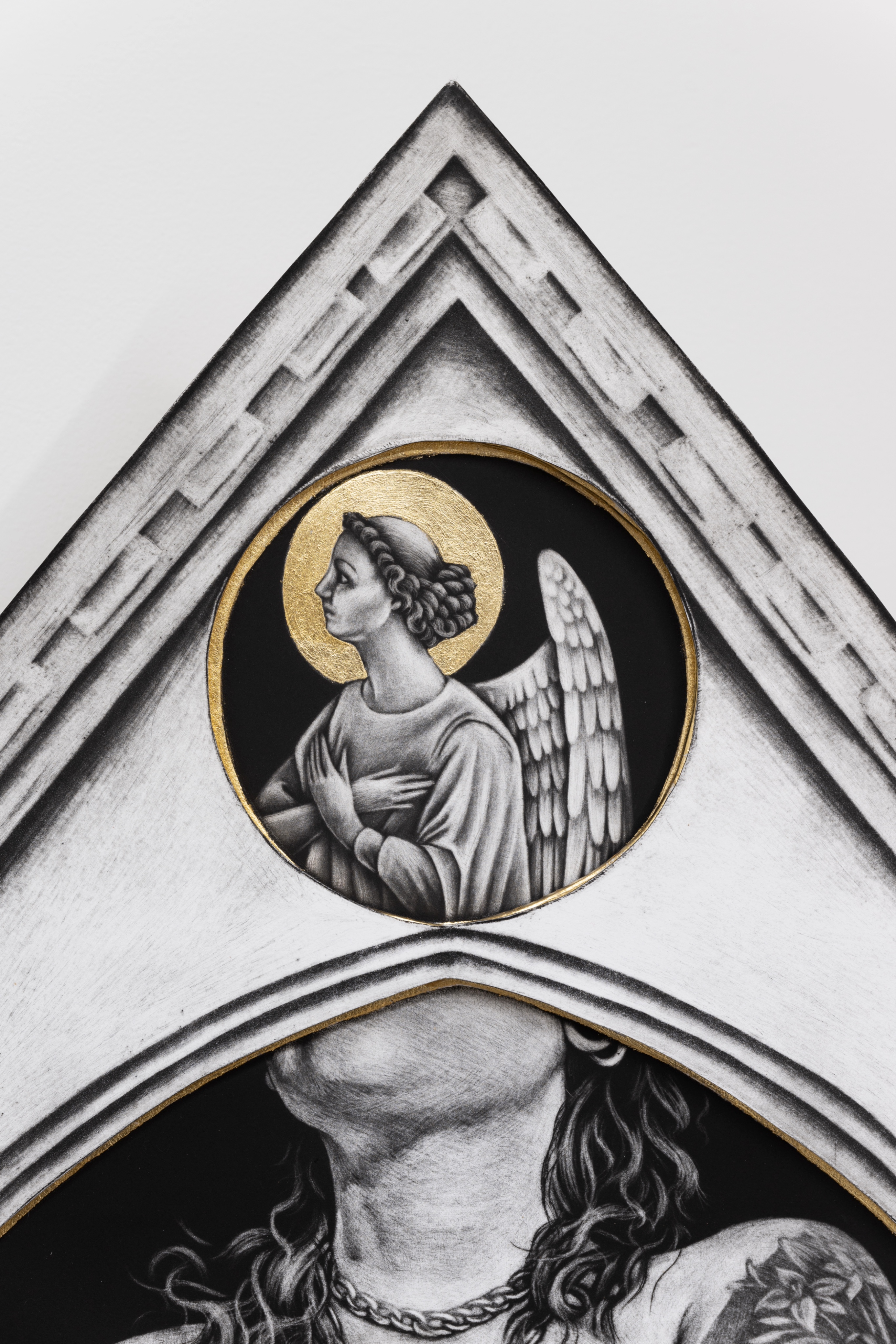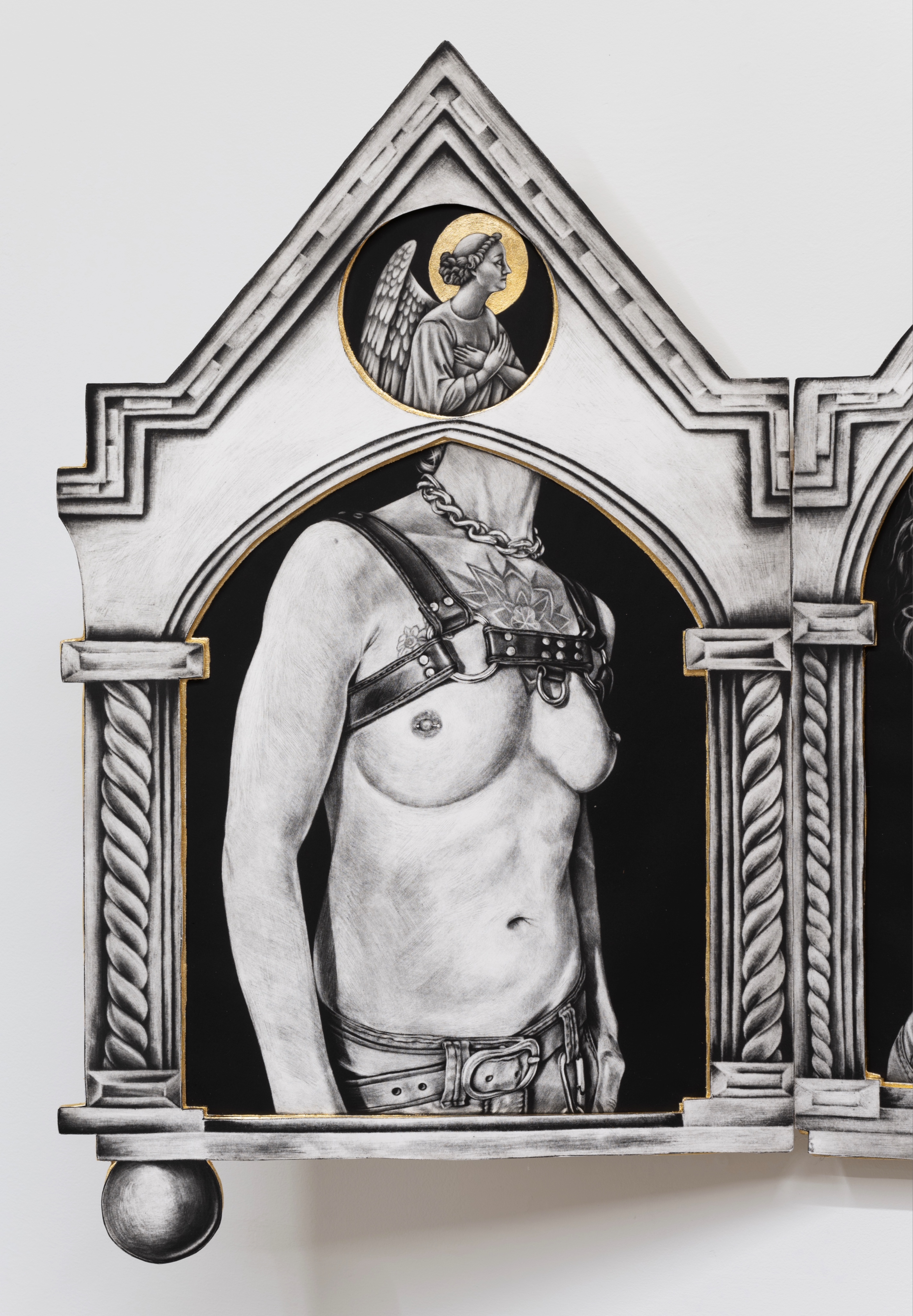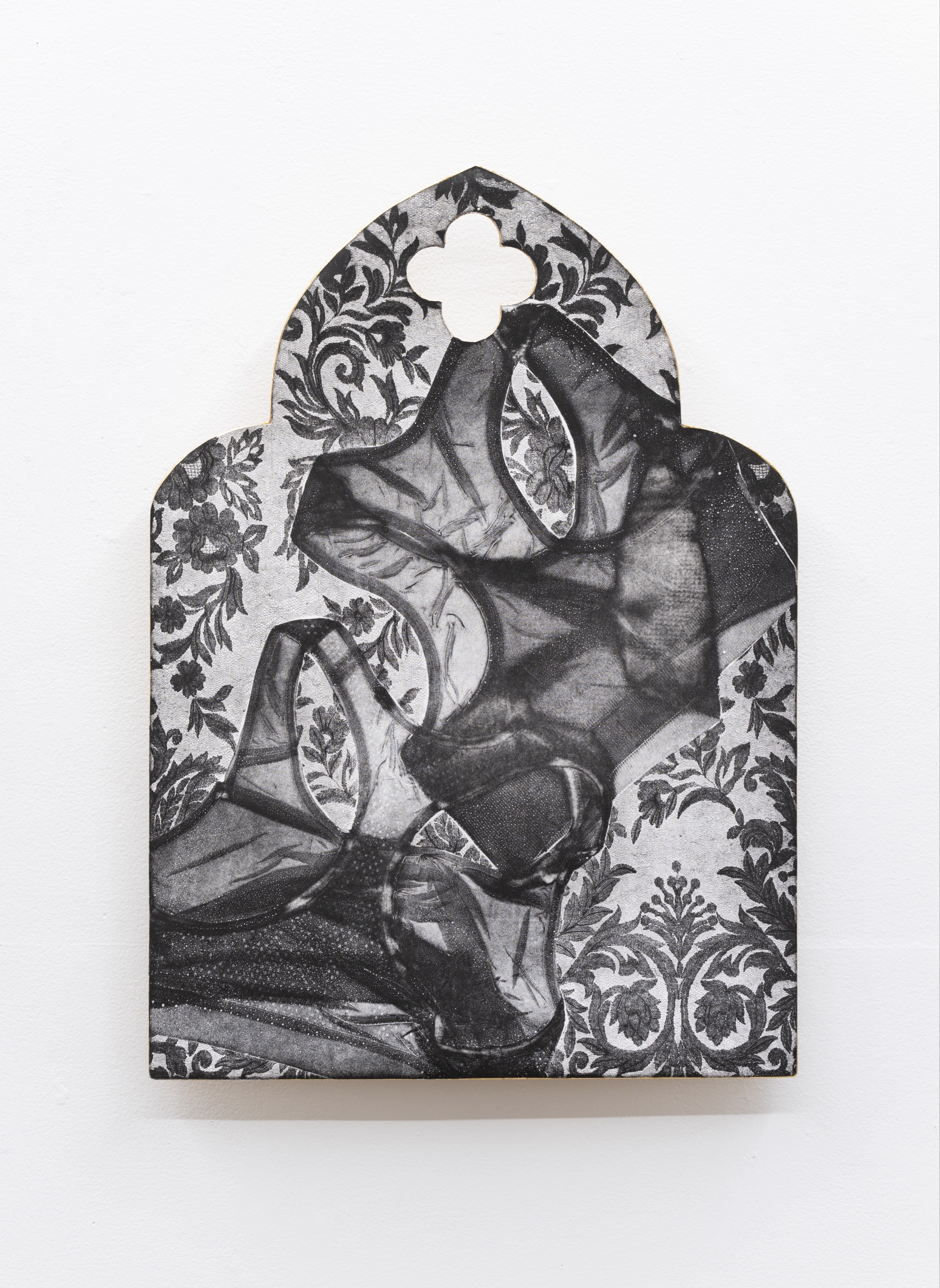 As a queer person I see the tender devotion that members of this community have for each other, and the subsequent need to deconstruct the binary matrix of the heteronormative world. By appropriating the imagery and aesthetics of the Catholic Church I seek to imbue these works with the aura and culturally accepted authority of religious art and sacred spaces. Not only is the imagery an act of devotion, but the making of these objects is as well. Intaglio, and more specifically mezzotints, are laborious etching processes that require an almost religious devotion to the medium. Through the countless hours of preparing plates and burnishing and scraping, the intimacy extends beyond the images themselves into their creation.