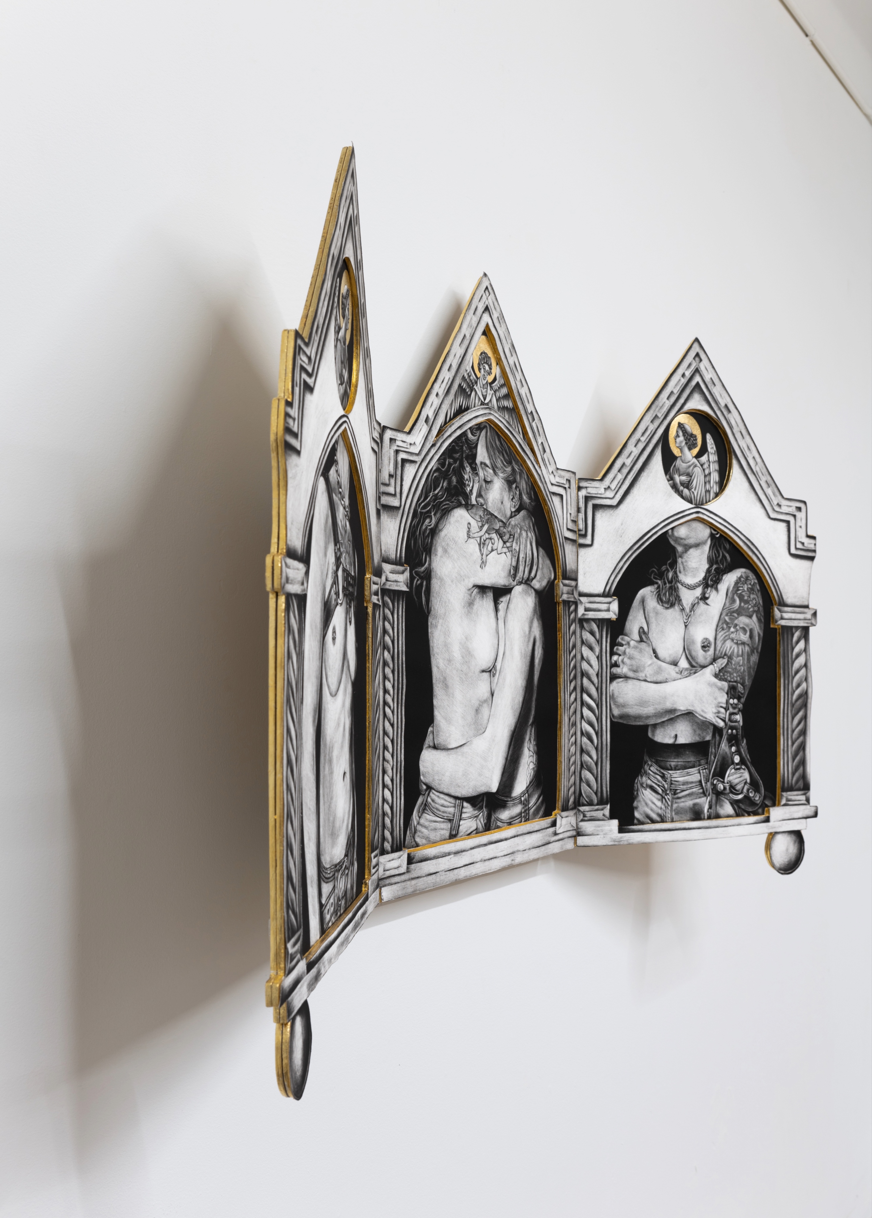 | dc.subject | queer, LGBTQ, lesbian, butch, dyke, print, printmaking, intaglio, etching, aquatint, soft ground, mezzotint, altar, sacred, holy, iconography, art history | |