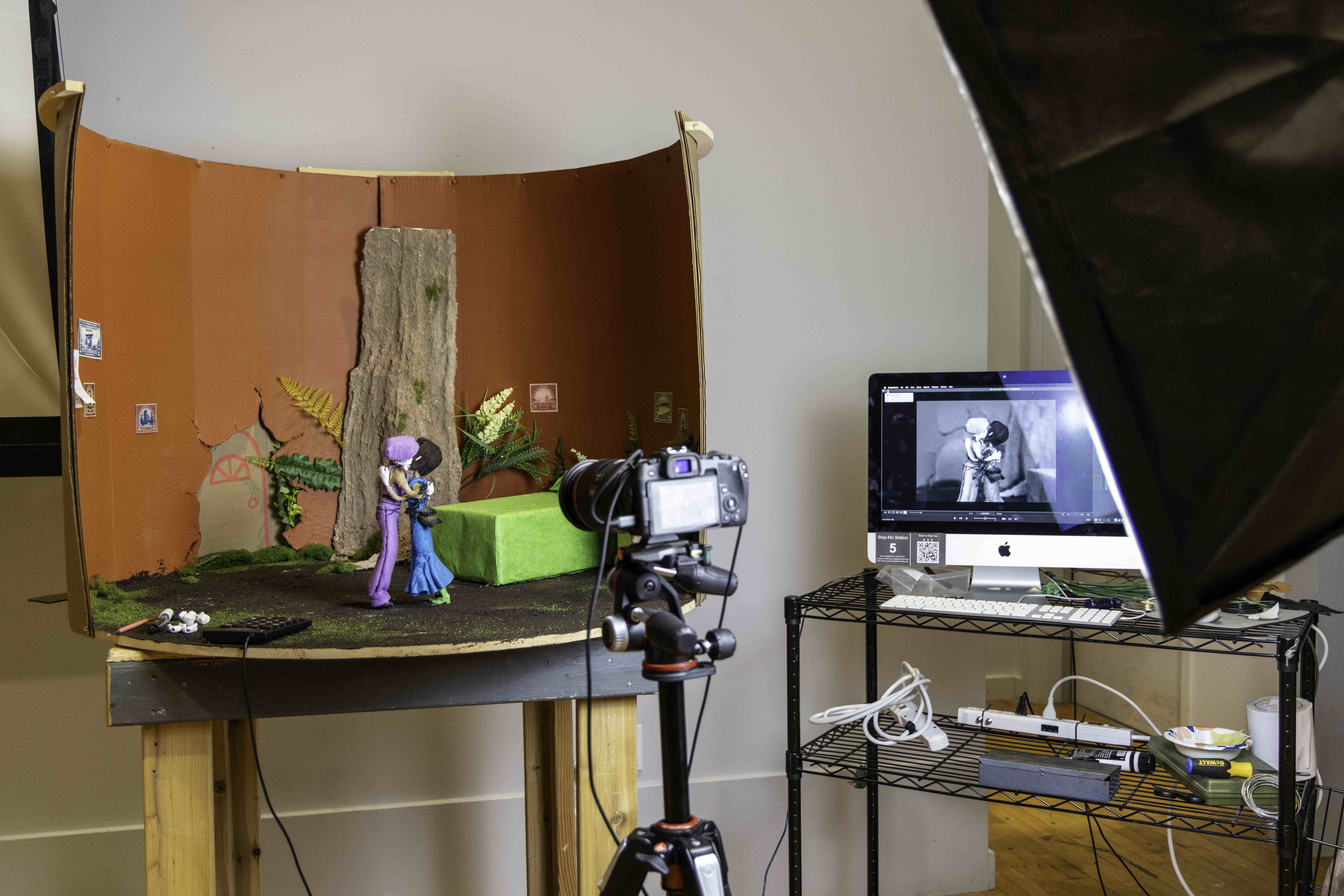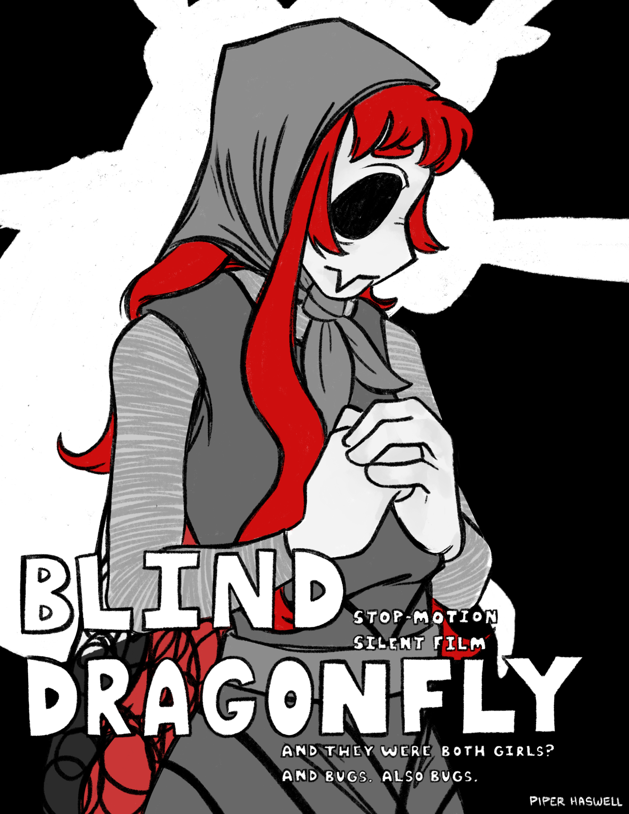 Blind Dragonfly is a 2-minute stop-motion animated silent short film. It adapts the story of ‘The Gift of the Magi’ by O Henry, featuring two anthropomorphic bug characters, Scarlett and Iris. Its primary focus was to experiment with non-verbal communication, using the techniques of silent era film and early stop-motion animation to convey this to an audience. The animation follows Scarlett, a crimson marsh glider, as she realizes she forgot about her anniversary. This results in a scramble in order to get her partner, Iris, something memorable to show her care. The film includes 4 stop-motion sets and 2 fully articulated wire puppets. It was animated entirely in the program Dragonframe, using 24fps on 2s. It has animation shot on both down shooters and 3D sets, and all shots are composed based on 4:3 ratio, calling back to silent film. It uses both replacement animation and erasure animation techniques for facial expressions. The film was edited using both Adobe After Effects and Adobe Premiere Pro. A score of music was chosen after animation was complete, to emulate an aspect of old silent films. Blind Dragonfly takes inspiration from several places, but primarily early stop-motion animation and silent film. The characters were directly influenced by the film The Cameraman’s Revenge, reflecting in their bug origins, as well as the general imperfectness of early animation, the implied hand of the artist. Its composition also takes a lot from silent films, including the aforementioned aspect ratio and music choices, as well as the use of intertitles. Blind Dragonfly was primarily created as a way to build experience in a variety of stop-motion animation techniques, as well as to become a portfolio piece for character animation.