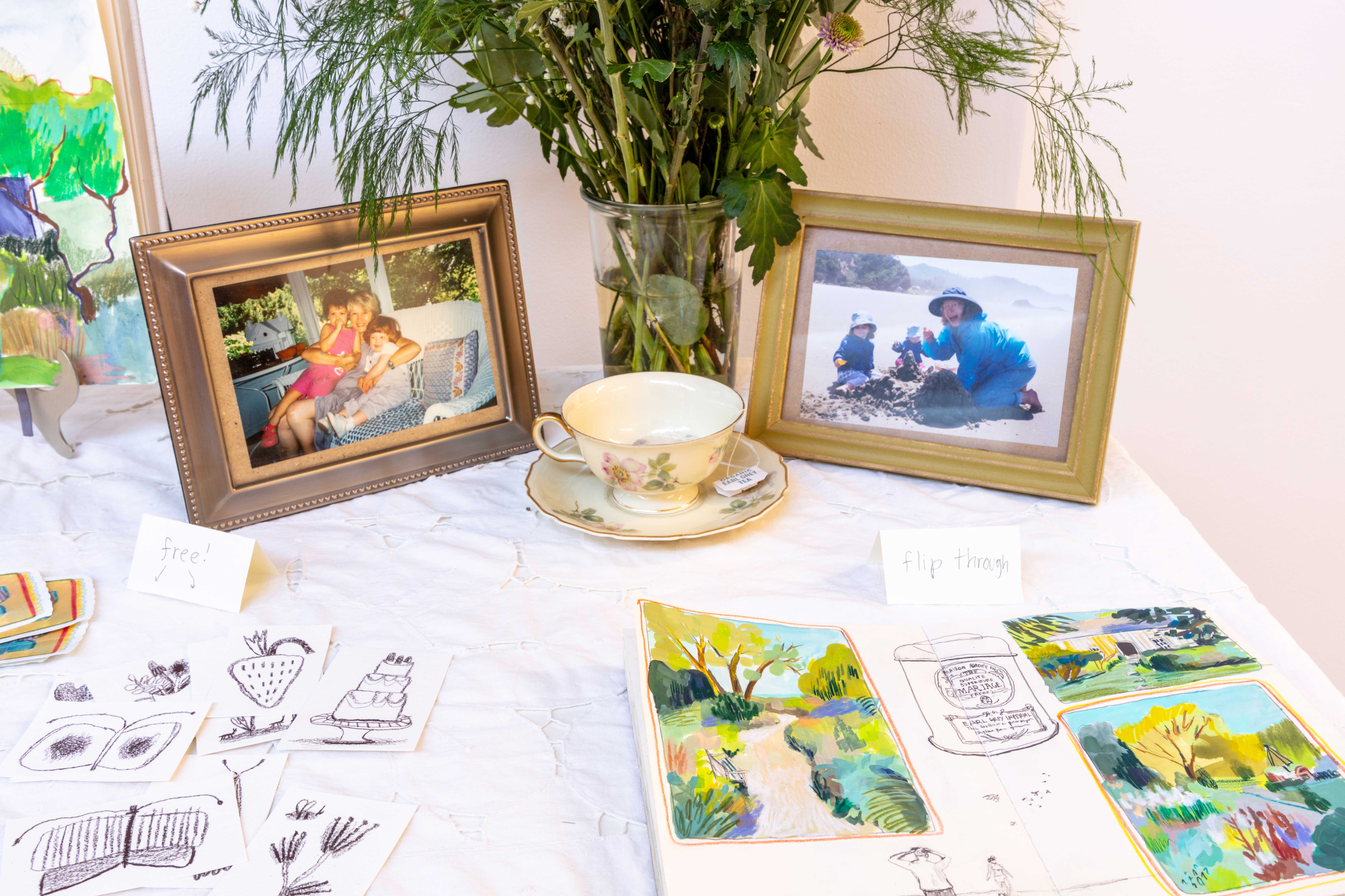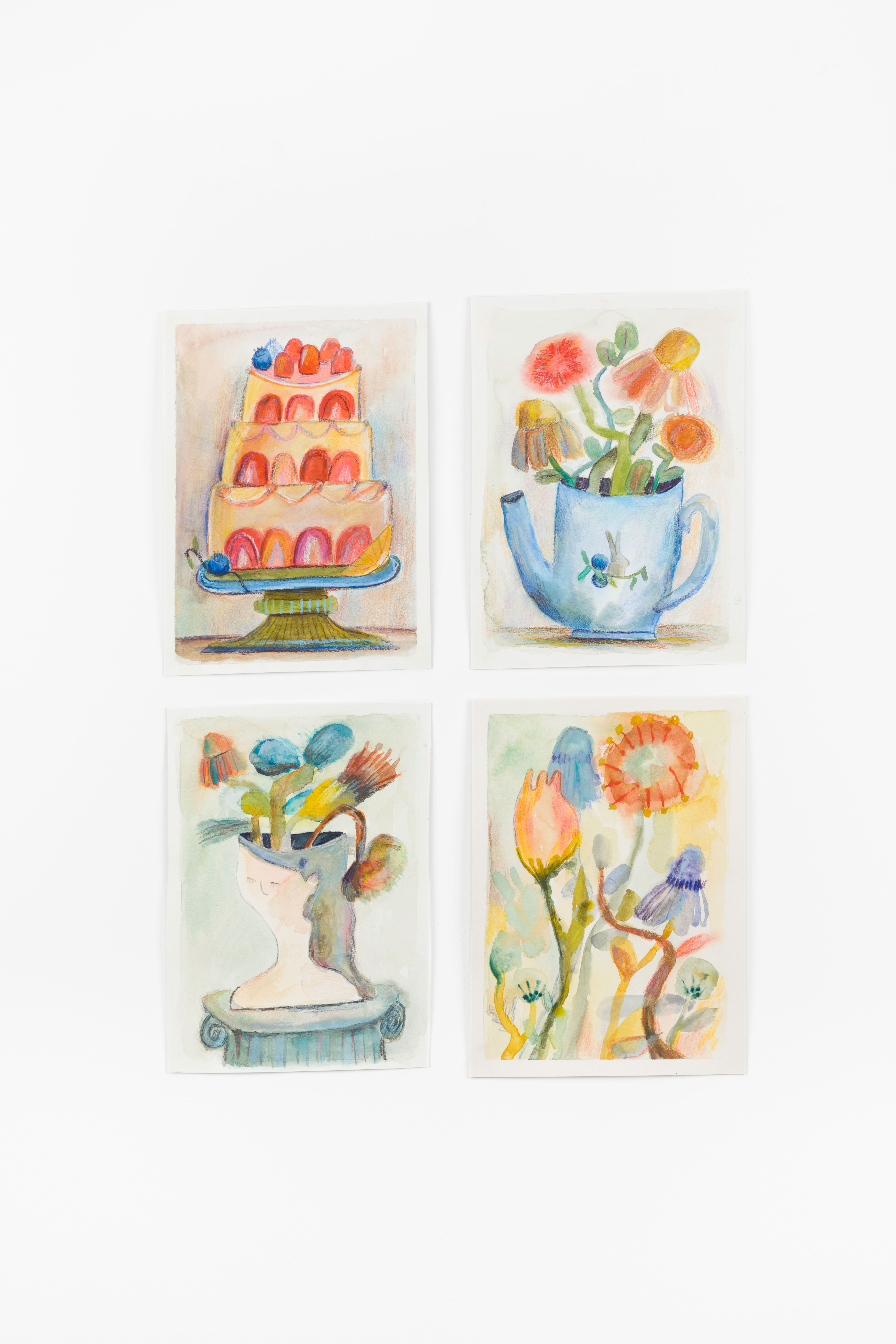 Memory Garden is a series of mixed media illustrations on watercolor paper that is inspired by my time spent during the summers at each of my grandparent’s houses. After my grandma Anne passed away in January I narrowed in on my relationships to my grandmothers and explored both their similarities and differences with one another. The concept of a garden ties them together literally because they were both amazing gardeners and they each studied landscape architecture. Throughout the summer I spent time working in my sketchbooks and doing creative research to find common threads between the two of them. The finished work encompasses this research and represents the symbols and narrative that I discovered over the summer. The process is an exploration of how the identities we hold of others are non-linear and ever-changing in nature. The finished work aims to recontextualize how memory shapes relationships, and hopefully will connect with others reflecting on their own personal histories. While developing this project I wanted to infiltrate the construct I had made up of where my art can exist in the world. I tried my best to depart from the black and white thinking I'd been doing of what is fine art vs what is illustration.