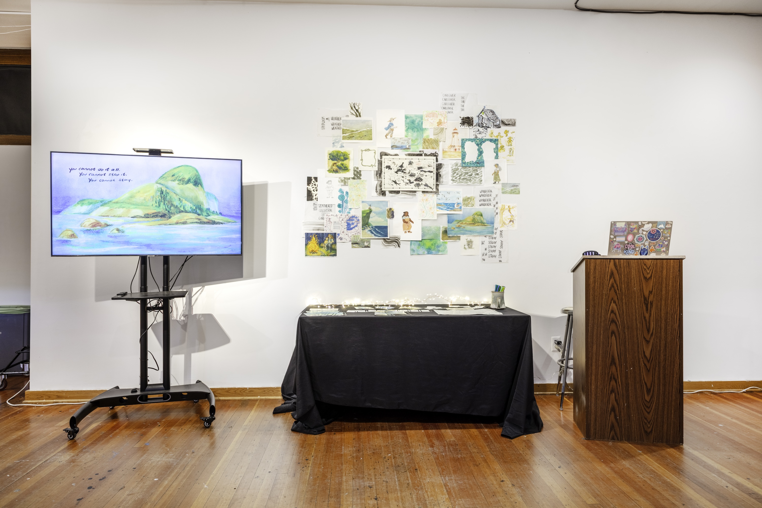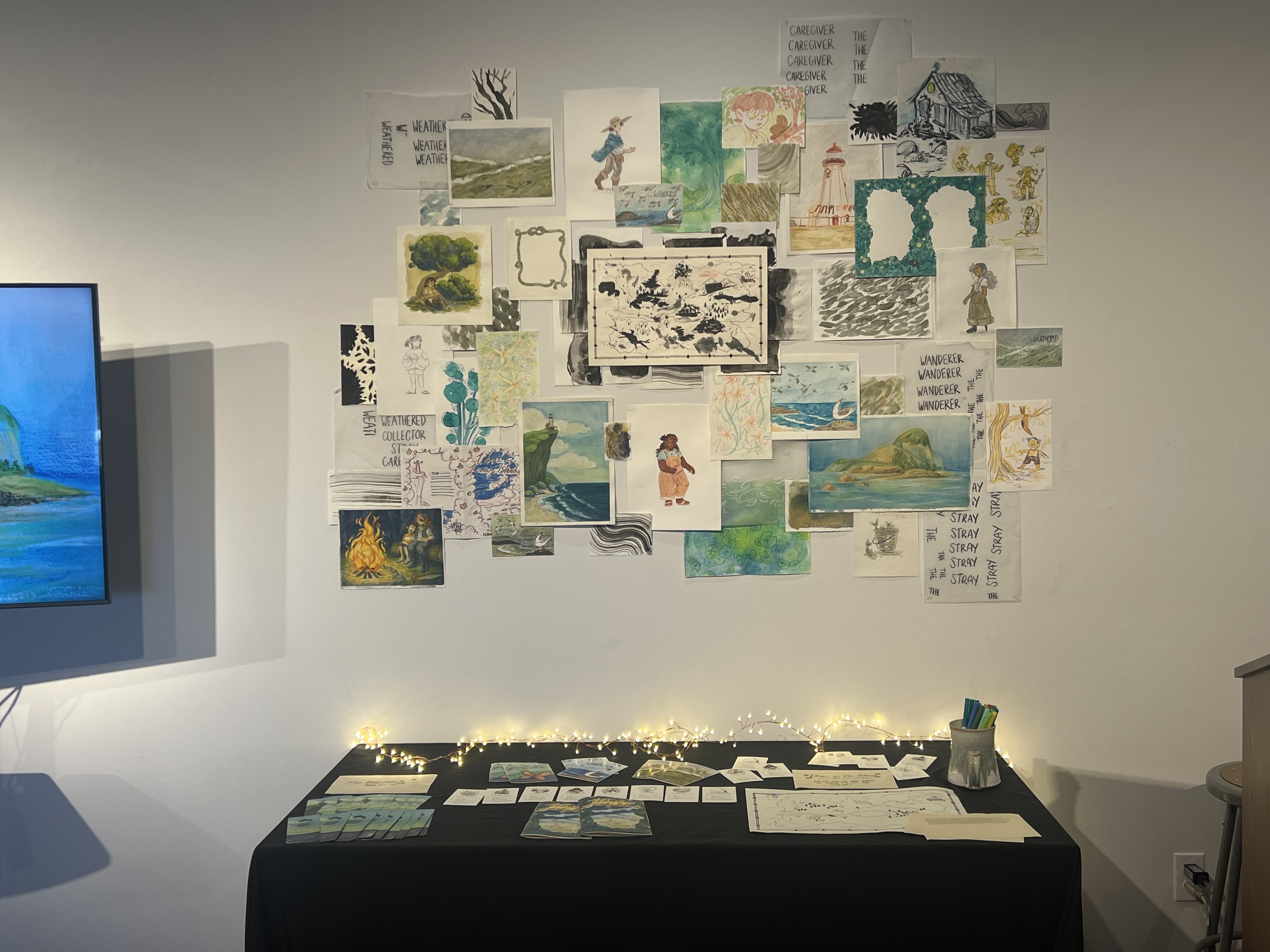 “What a Lovely Island” is an illustrated tabletop roleplaying game about lonely characters discovering the wonders of a dying Island. Through drawing onto a paper map, players will take turns exploring the Island and acting out scenes. There are only three months of summer to spend here before the characters leave and the Island dies. Players will spend the end of the game drawing back over the Locations they discovered in play, destroying them. This game explores themes of home and connection. Textured analog illustrations evoke the Island’s nostalgic feeling and inspire players to create and uncreate their own art.
