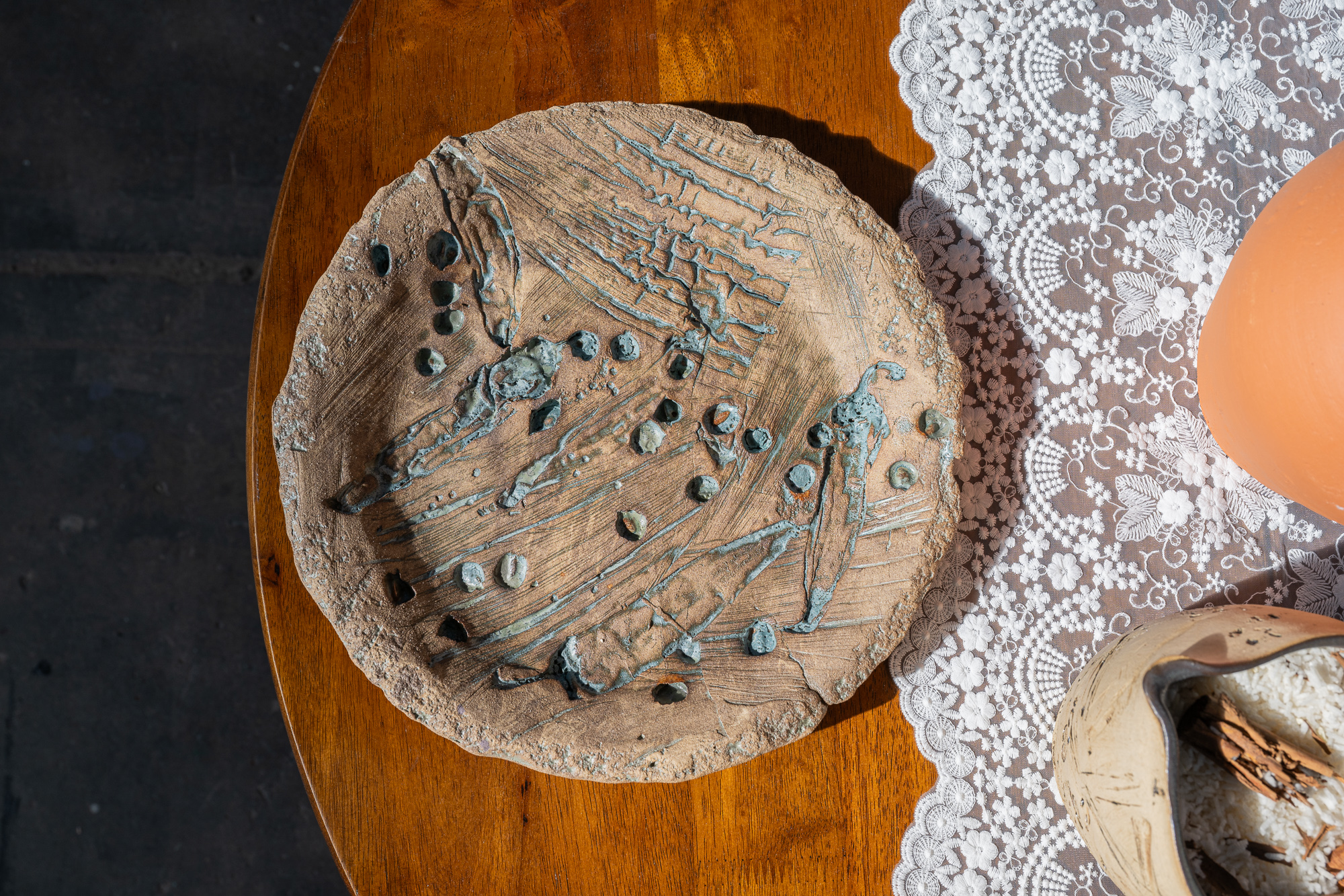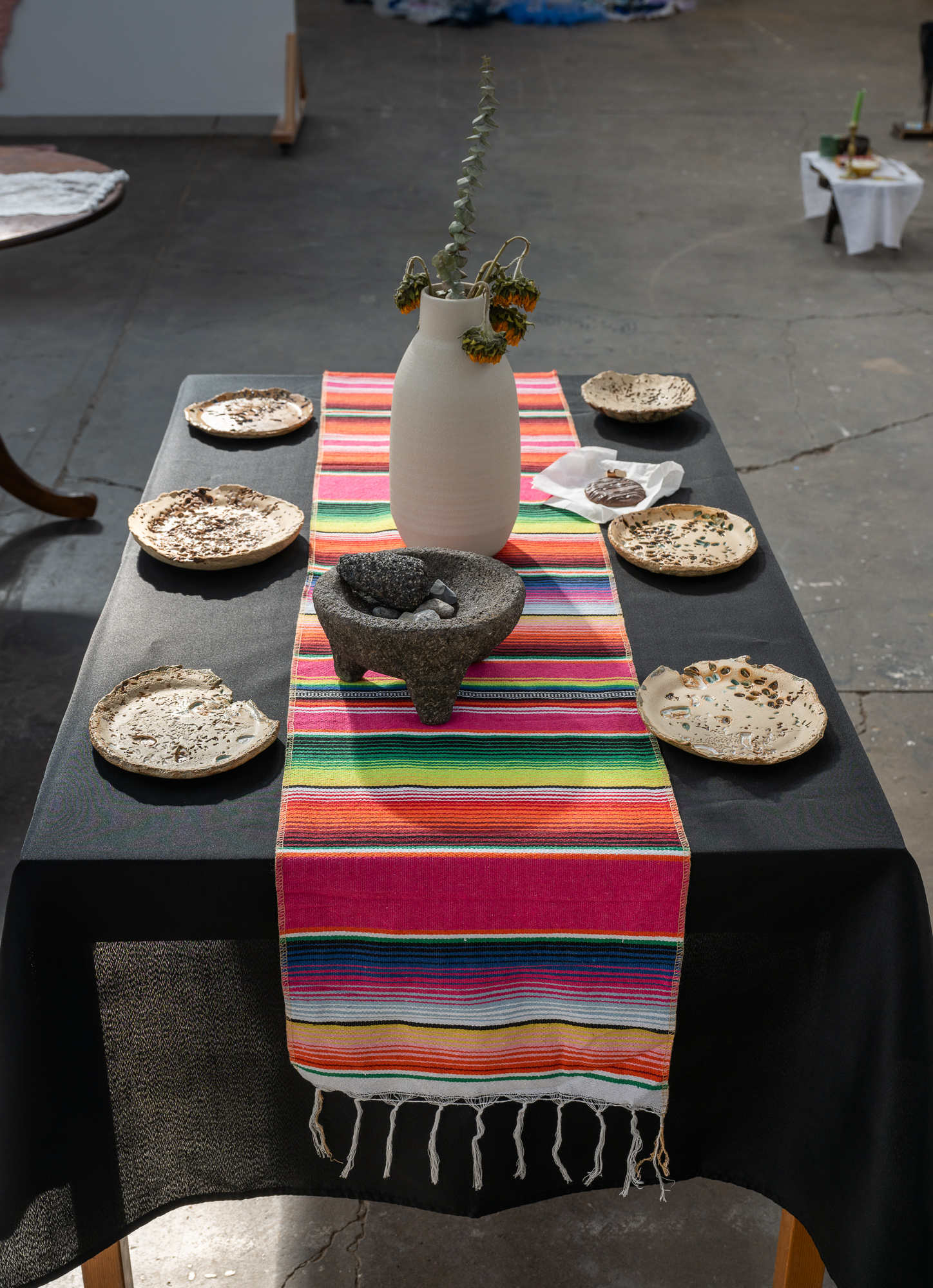 "I Am de Mis Antepasadas" is a dedication to the labor of love. I use my art as a way of honoring my ancestors’ perseverance, drawing influences from the personalities, sacrifices, and the strengths of our family that continue to shape me into the adult I am today. This is my rendition of recontextualizing identity as an artist born into two beautiful Latin American cultures—both unique in their own right—alongside being born and raised in the United States of America. Creating ceramic fossils imprinted with the ingredients of my cuisine allows me to commemorate my ancestry while simultaneously passing down heirlooms for my descendants. I create for the pasado, the present, y el futuro.
