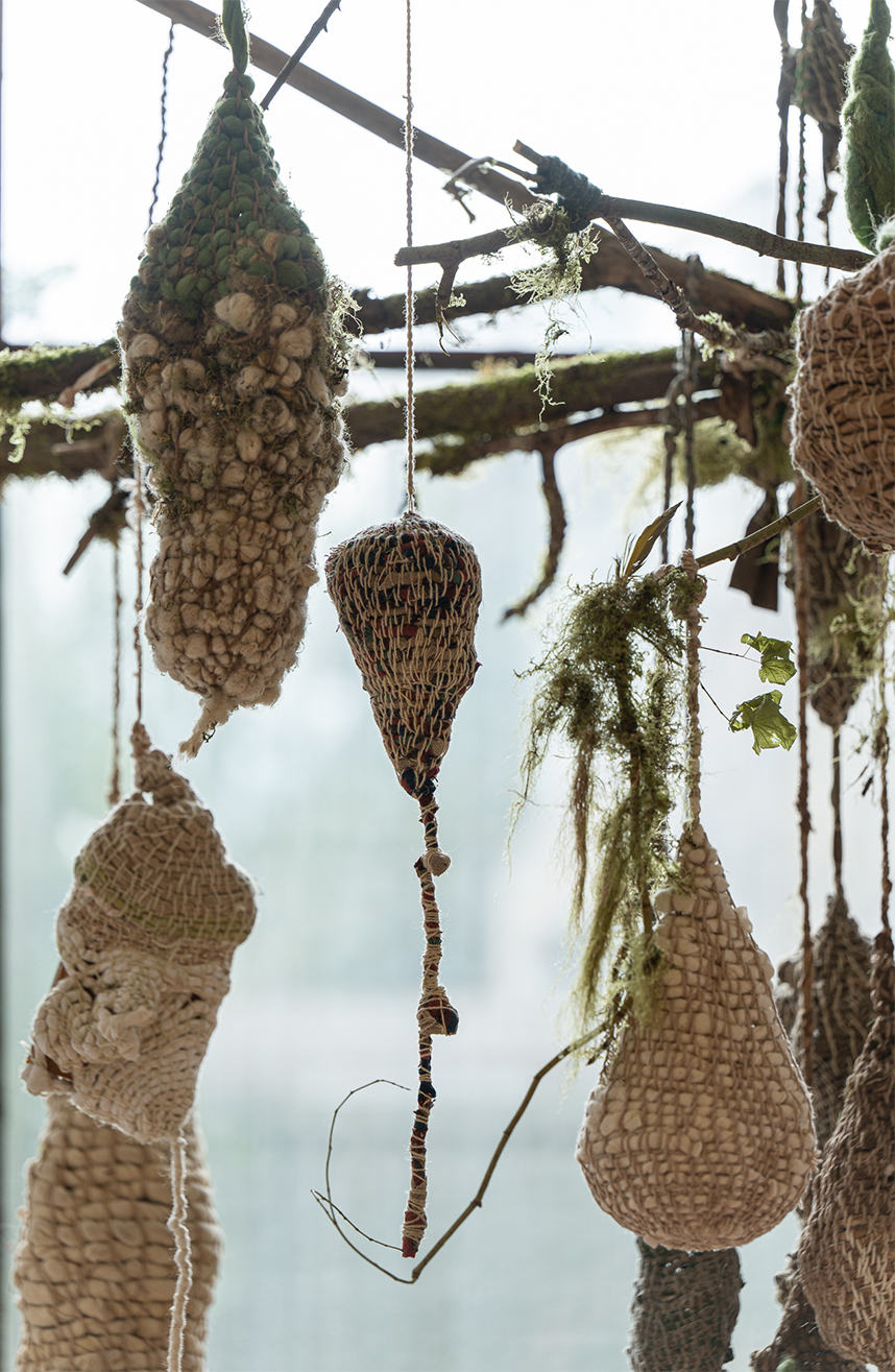 Growth Spurt is a sculptural installation that examines the parallels between human life cycles and the growth cycle of plants. Just as plants require all four elements to survive and undergo constant change, each part of the exhibition represents a stage in the process of human transformation and evolution. We all experience change in our lives, but in different ways and at different times. This work is interwoven and connected in a nonlinear timeline, reflecting the intertwining of my artwork and personal journey of growth.
