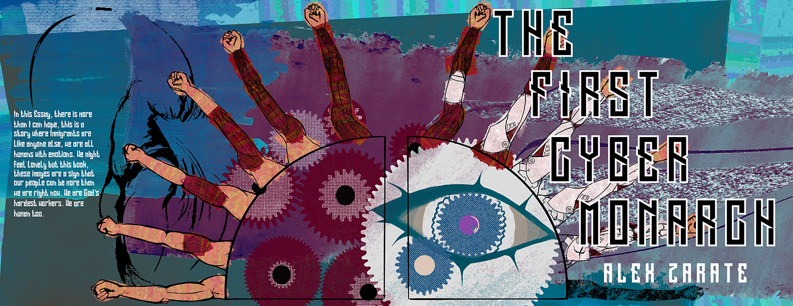 The First Cyber Monarch is a 28 page visual essay that tells the story of Valeria, an immigrant who moves to a new city where technology triumphs. We follow her and through her experiences as an immigrant. A vision of a new life, experiences, emotions, feelings and perspective. With her, we get to meet new people with unique personalities that comes with moving to a new place to help those close to you.