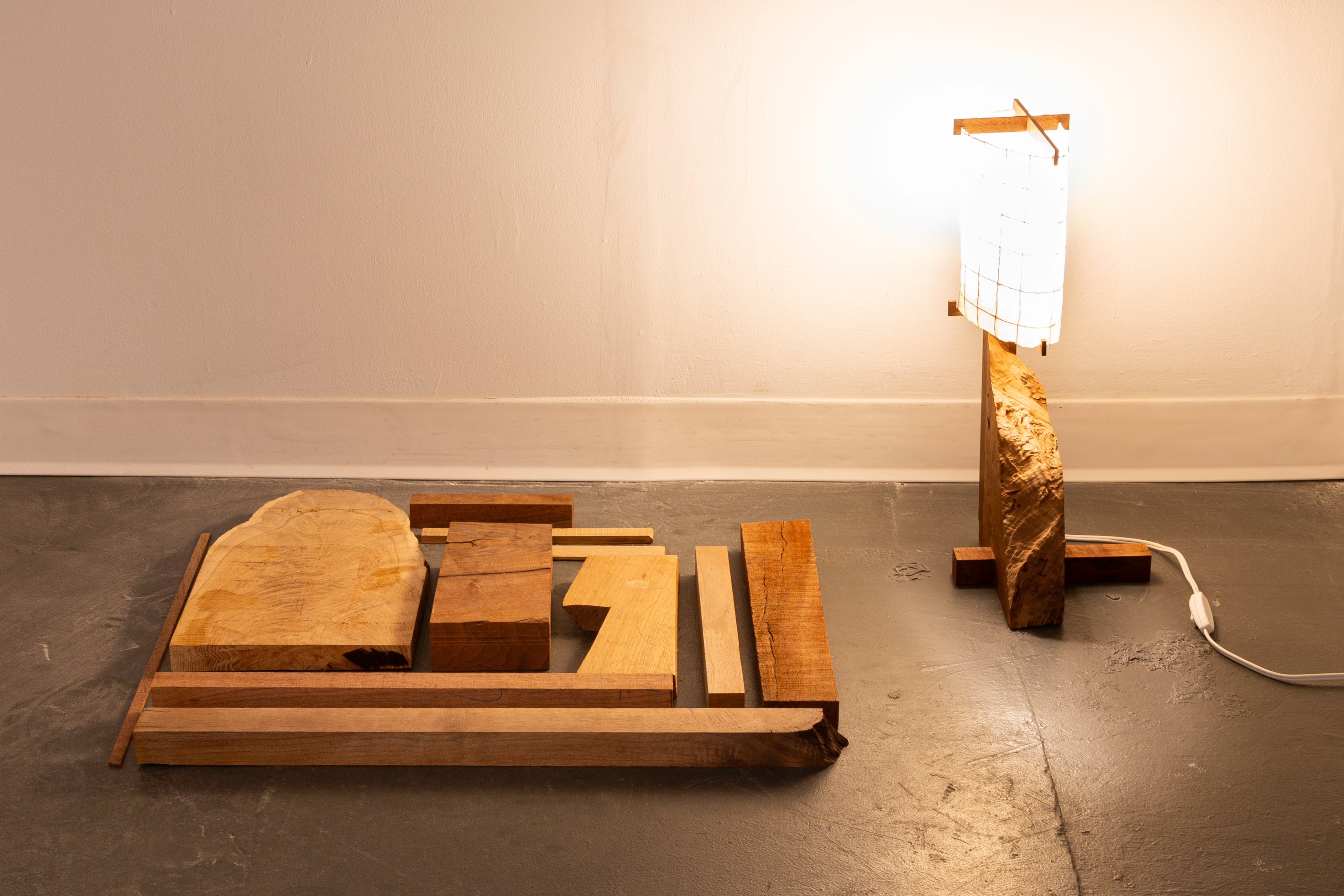 By utilizing simple mechanics through my designs, such as levers, wedges, and hinges, I simplify connection and adjustability in my lamps to their most fundamental elements. This timeless design draws from the enduring beauty of natural elements. Functionality is found within the form. These lamps offer a kind of joy, a moment of stillness and comfort that creates a space where people can unwind and feel at ease. This series of prototype light fixtures utilizes organic shapes and found forms to reintegrate natural patterns into everyday life. By blending utility and sculpture together, the light fixtures act as 3D sketches for experimental design. By puzzling together raw material, fitting form to function, and choosing the right mix of mediums, these designs arise from a change in perspective. Once the design emerges from this rearranging of material, the pieces are adhered in a way that isolates the earthly nature while disguising industrial hardware and emphasizing originality. Ultimately, this collection of pieces will represent a spontaneous design process based on intuition and seeking a cohesive language between materials and form.